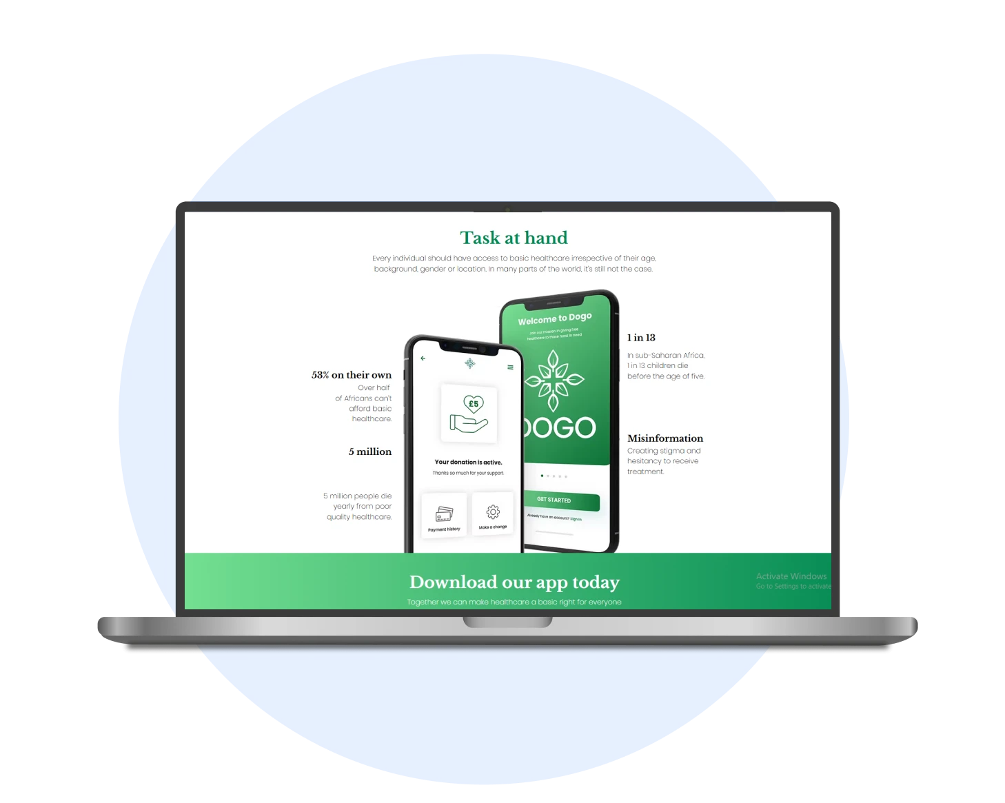 Experience DOGO’s user-friendly design and inspiring visuals that showcase the impact of life-saving healthcare.