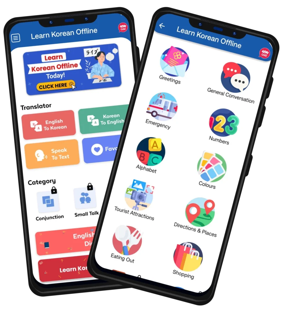 Many people struggle to learn Korean because of complex apps, lack of internet access, or long, overwhelming lessons. This can make learning Korean language skills feel frustrating and time-consuming. Our “Learn Korean Offline” app solves these problems by offering easy-to-use offline access, short 5-minute lessons, and interactive quizzes that make learning Korean fun and simple. Whether you’re struggling with Korean vocabulary, pronunciation, or staying consistent, our app is designed to fit into your daily routine effortlessly. With “Learn Korean Offline,” mastering the Korean language is no longer a challenge but an enjoyable journey!