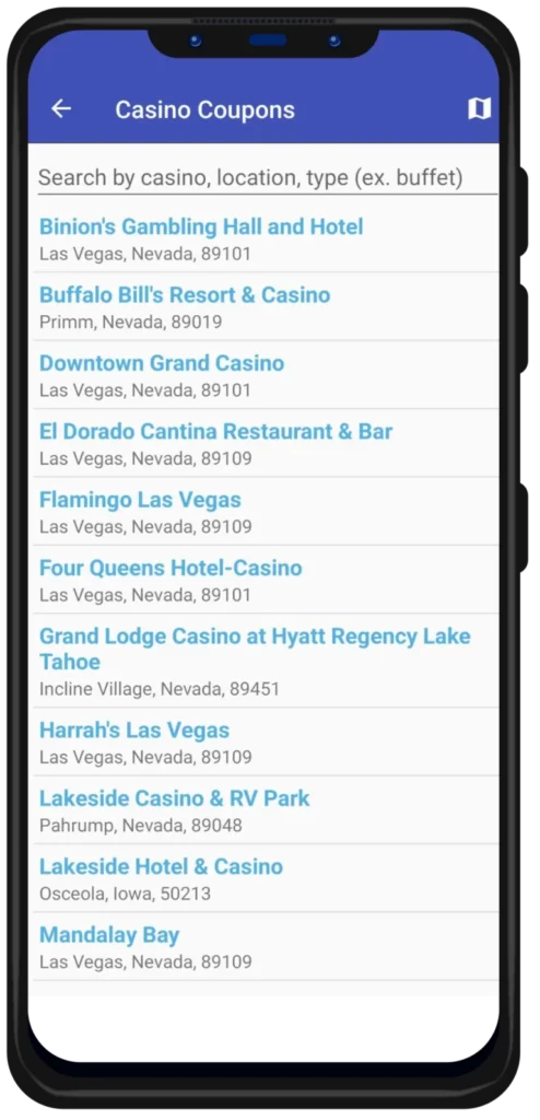 Our app makes it easy to explore U.S. casinos, giving you everything you need in one place. From detailed casino info, including games, rates, and special offers, to turn-by-turn directions, we’ve got it covered. You can find casinos near you with just a tap and never miss out on discounts or freebies. Plus, enjoy valuable casino tips, strategies, and instructional videos to enhance your experience. Planning your next visit has never been easier!